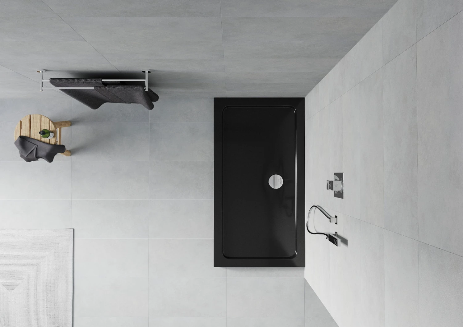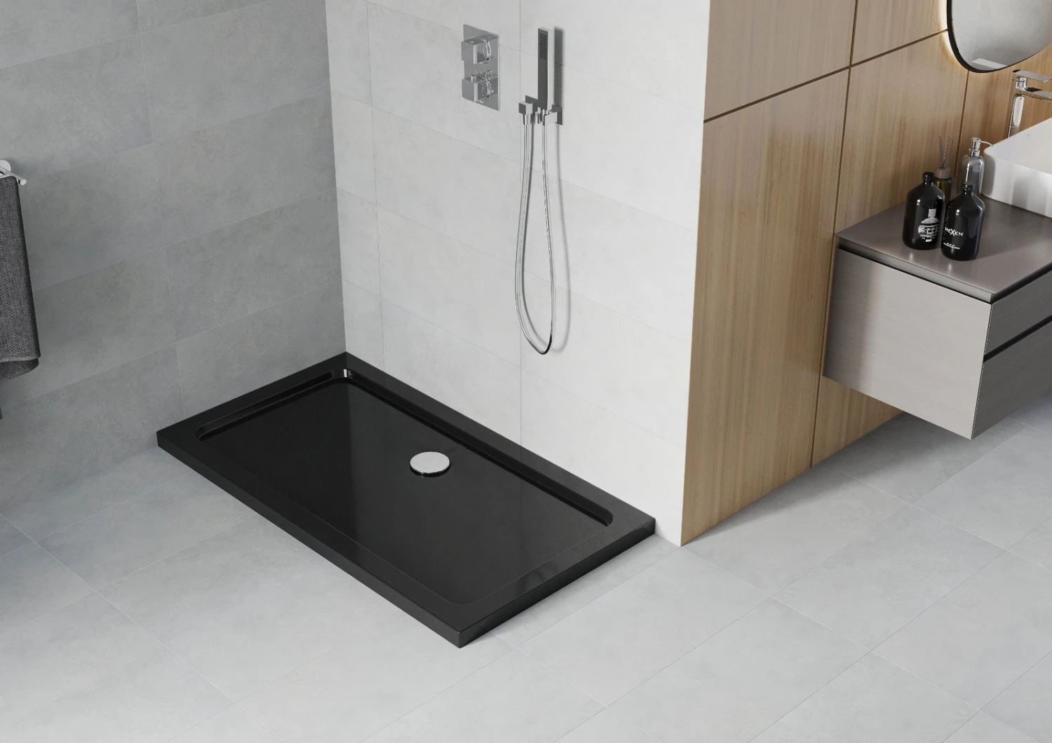 Mexen Flat brodzik prostokątny slim 130 x 70 cm, czarny, syfon chrom – 40707013