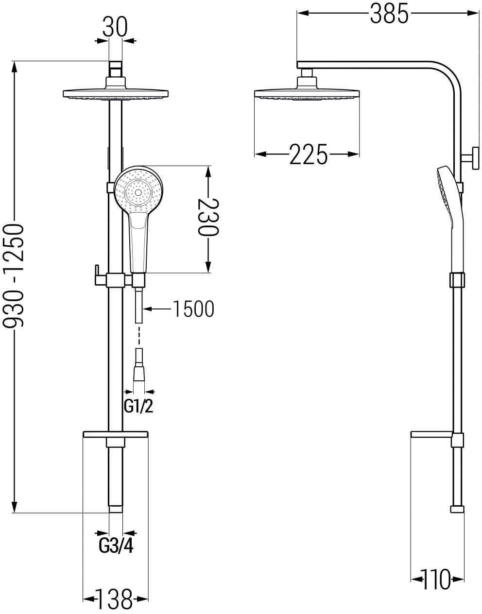 Odległość od ściany: 385 mm