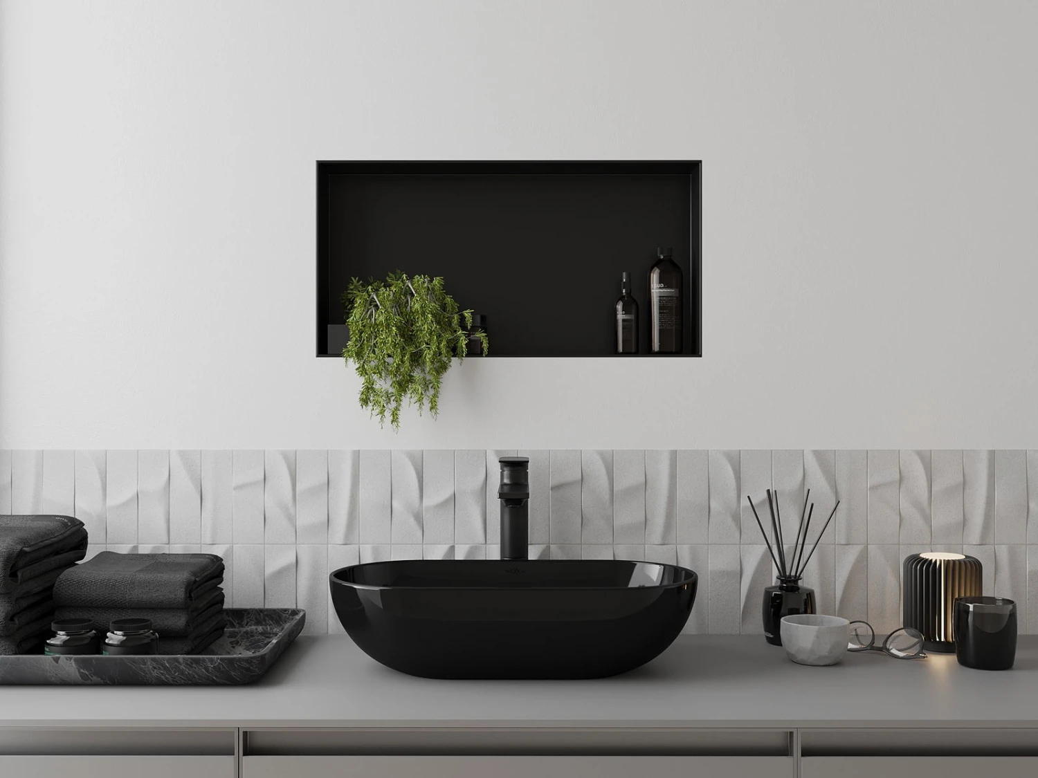 Mexen X-Wall-NR półka wnękowa bez kołnierza 60 x 30 cm, czarna – 1971603010