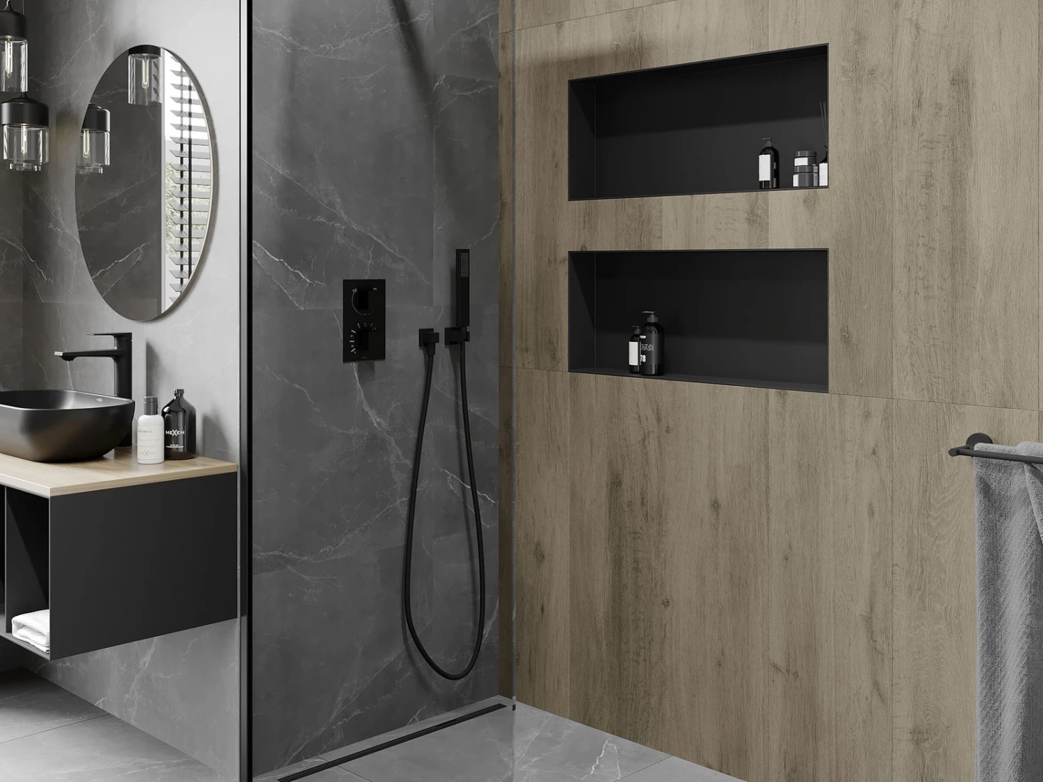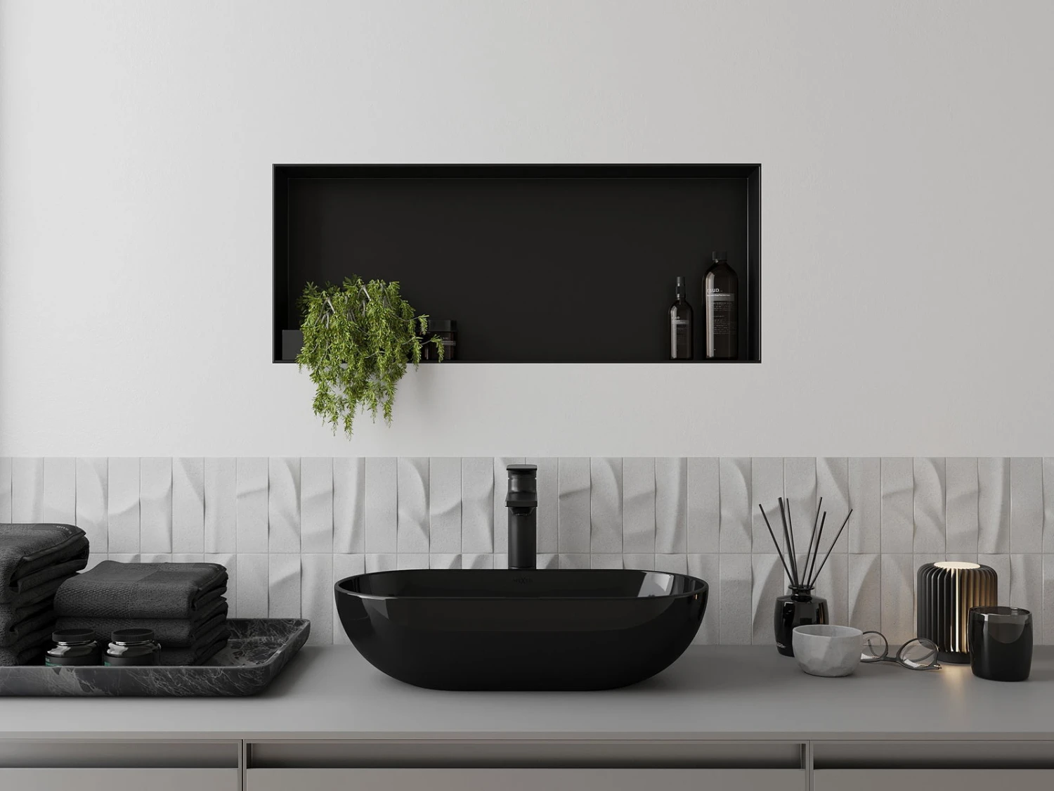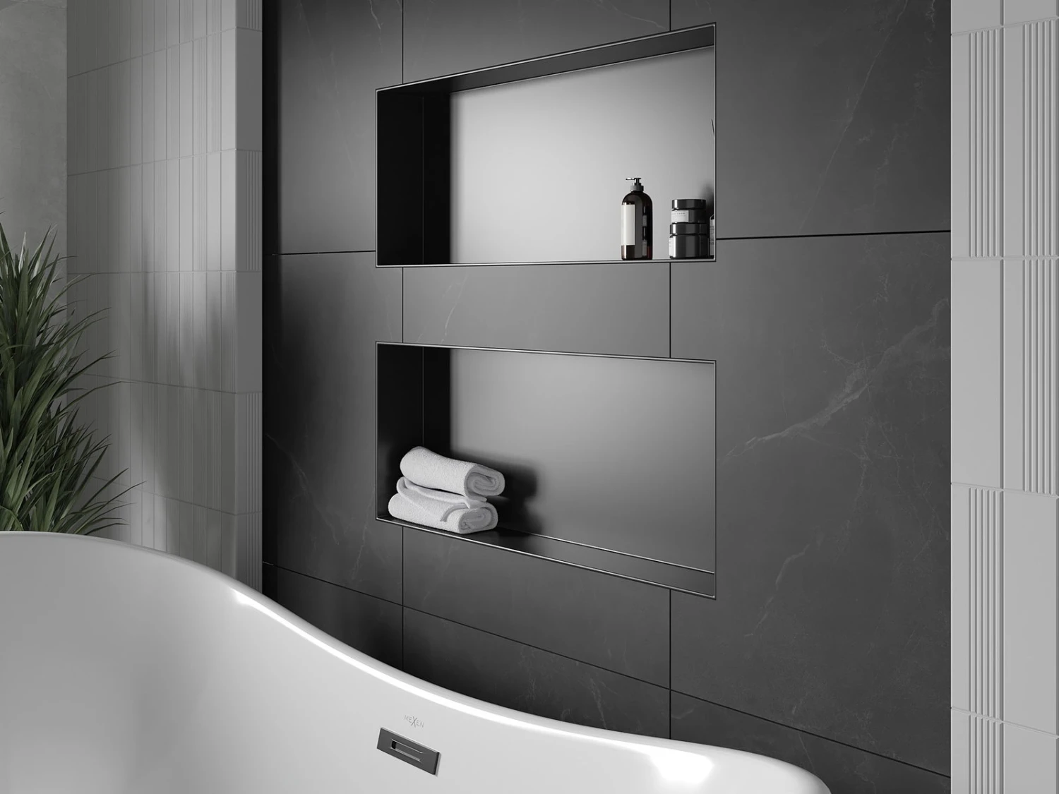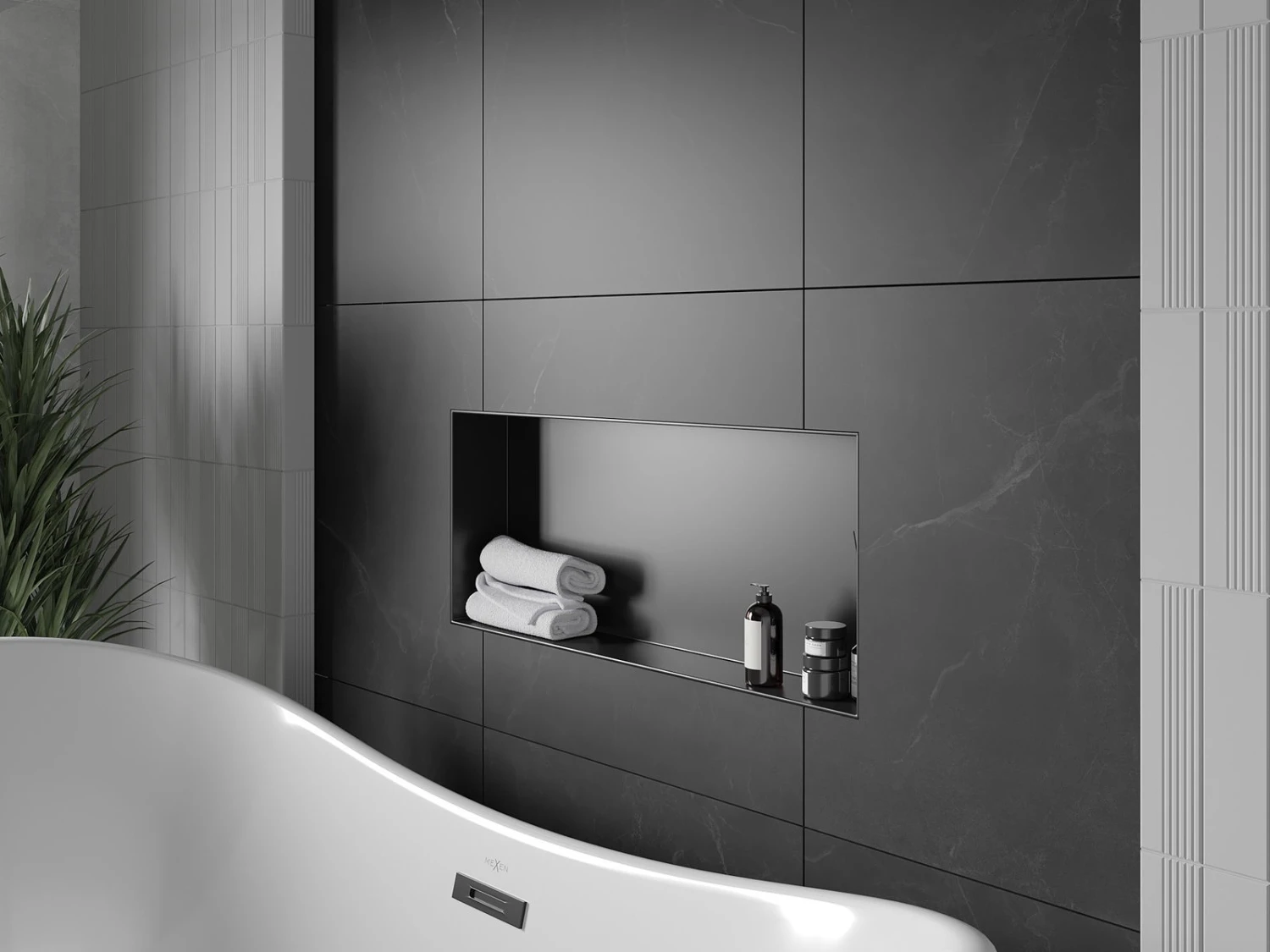 Mexen X-Wall-NR półka wnękowa bez kołnierza 75 x 30 cm, czarna – 1971753010